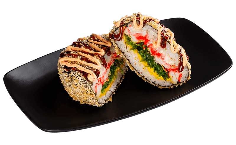 SUNSHINE доставить суші-бургер з сурімі охайно оформленим, щоб ви могли насолоджуватися ним одразу після доставки.